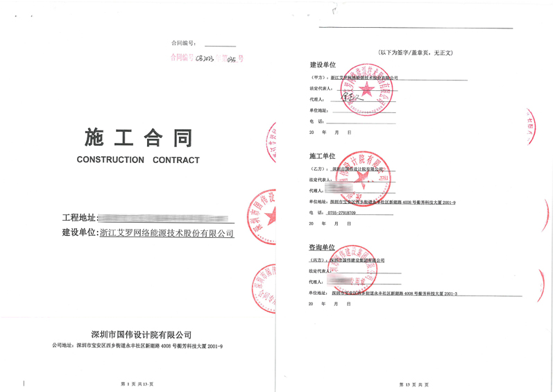 恭喜深圳国伟建设集团签约浙江艾罗网络能源办公室装修工程