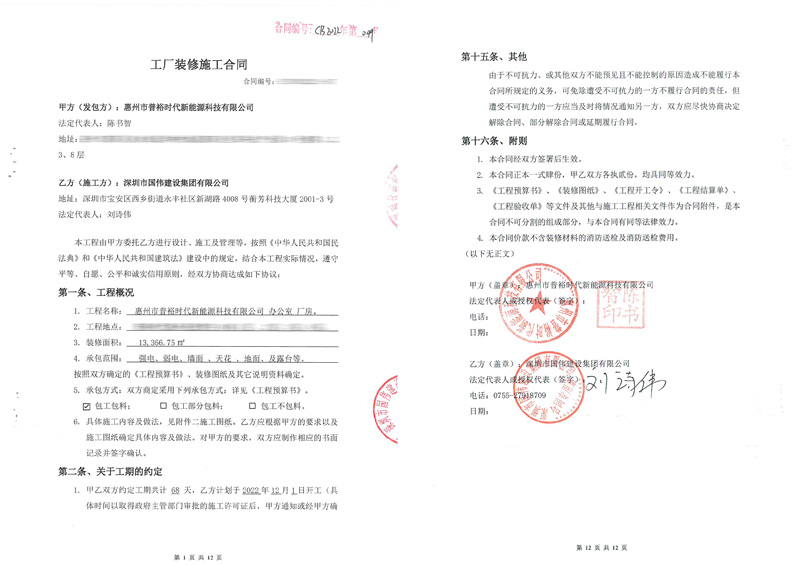 惠州市普裕时代新能源科技有限公司办公司、厂房装修项目