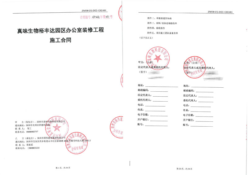 恭喜深圳国伟建设集团签约真味生物裕丰达园区办公室装修工程