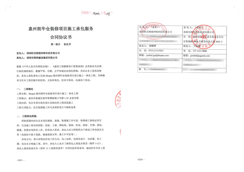 恭喜深圳国伟建设集团签约深圳虾皮物流网络科技厂房装修工程